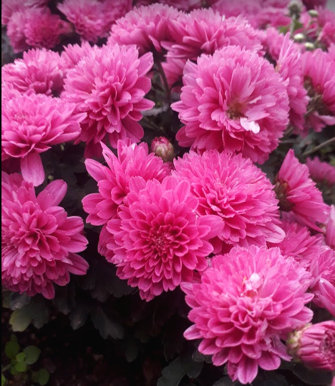 거리에 국화들이 하나 씩 피고 있습니다.