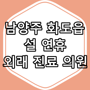 남양주시 화도읍 2025년 설 연휴 문 여는 병원,약국 총정리