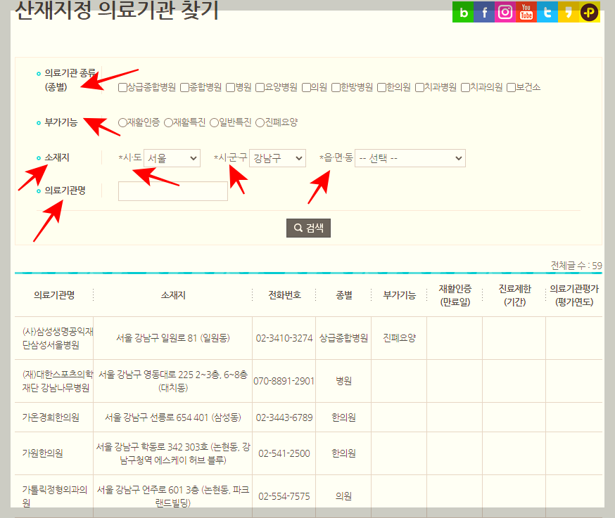 근로복지공단 사이트를 이용하여 산재 지정 병원 찾기