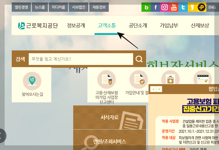1. 근로복지공단 사이트 https://www.kcomwel.or.kr 접속합니다.