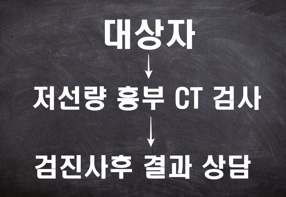 1.만 54세 ~ 74세 이상 남녀 중 폐암발생 고위험군에 해당되는 아래 대상자는 2년마다 저선량 흉부CT검사와 사후 결과상담을 받습니다.
