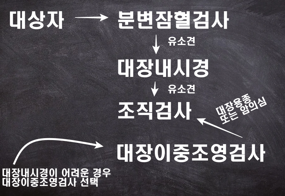 (대장내시경 검사가 어려운 경우, 대장이중조영검사 선택 가능)