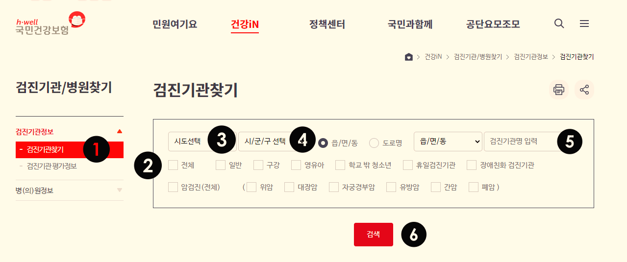 - 검진기관명을 입력하여 검색도 가능