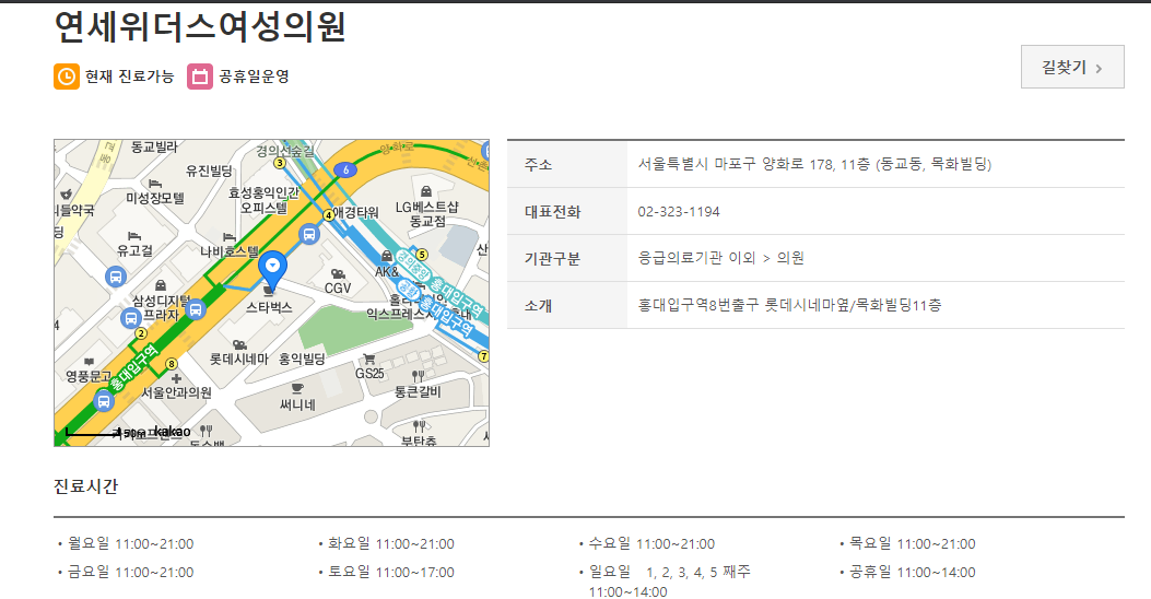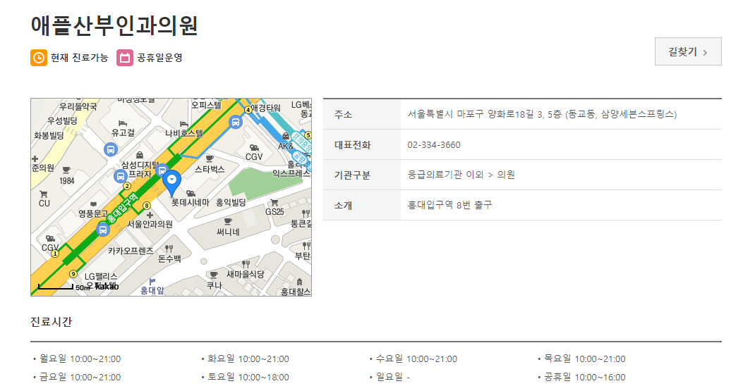 공휴일 진료하는 홍대 산부인과 병원 검색 결과
